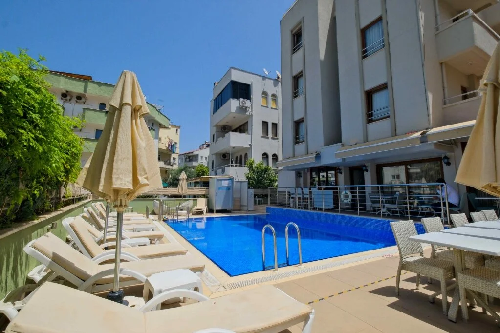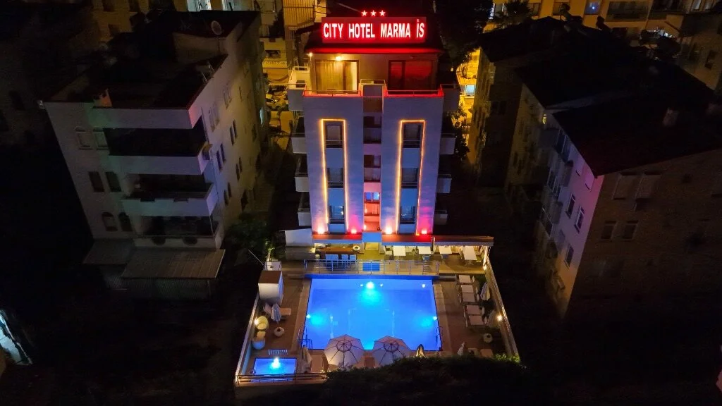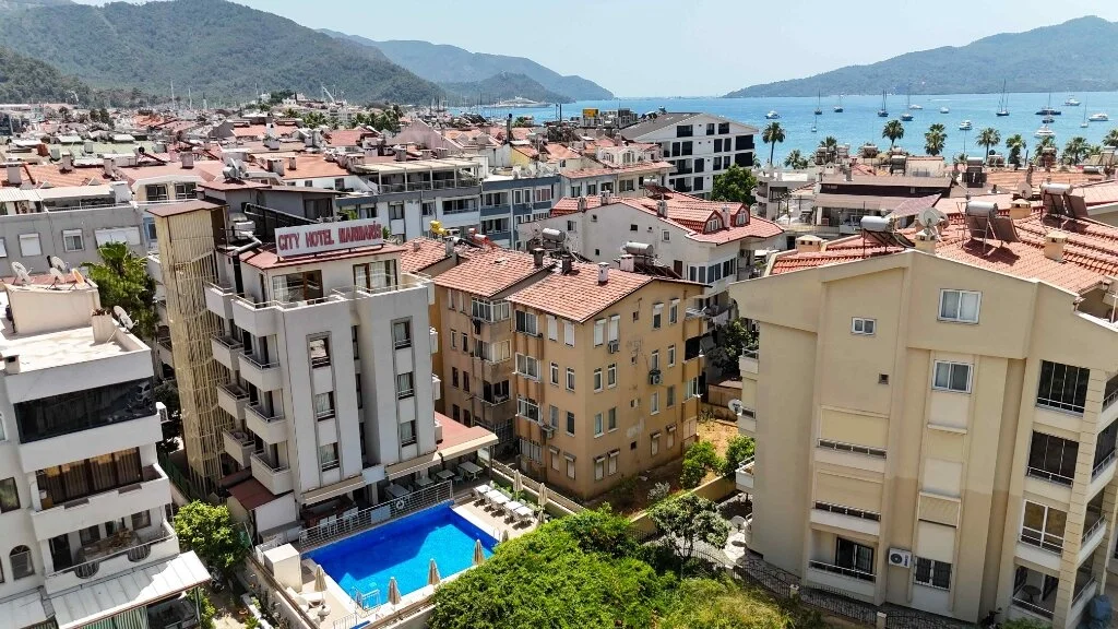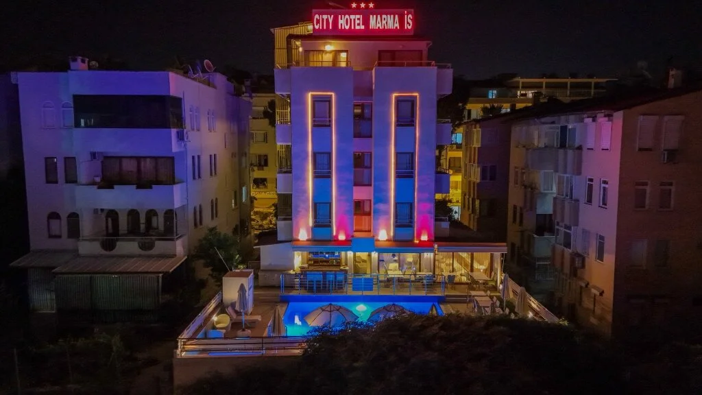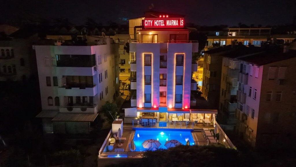 Marmaris merkezde konumlanan City Hotel Marmaris, ev sıcaklığındaki odaları, güler yüzlü personelleri ve doğal güzellikleri ile misafirlerine huzurlu bir tatil vadediyor. Tesisin tüm odalarında; TV, uydu yayını, minibar, klima, kablosuz internet bağlantısı, saç kurutma makinesi, balkon, üç kişilik odalarında şezlonglu teras bulunuyor. Denizin maviliğine ve şehir hayatının eğlencesine yakın konumda bulunan tesisin turunç ve meyve ağaçlarının gölgesinde kahveni yudumlayabilirsin. Sabahları leziz bir kahvaltı servisiyle güne başlayabileceğin tesisin odalarında ve ortak kullanım alanlarında Wi-Fi bulunuyor. Ücretsiz plaja 100 metre uzaklıkta olan tesiste; güneşin tadını çıkarabileceğin açık havuz, minik misafirler için açık çocuk havuzu, şezlonglu terası, ortak TV alanı, kuru temizleme ve leziz tatlar sunan restoran mevcut. Doğal güzellikleri ve kusursuz plajıyla eğlenceli tatillerin vazgeçilmez adresi Marmaris’te bulunan City Hotel Marmaris, ev konforunda sunduğu odaları, güler yüzlü hizmeti ve yüzme havuzu ile Marmaris Otogarı’na 2 km mesafede bulunuyor.