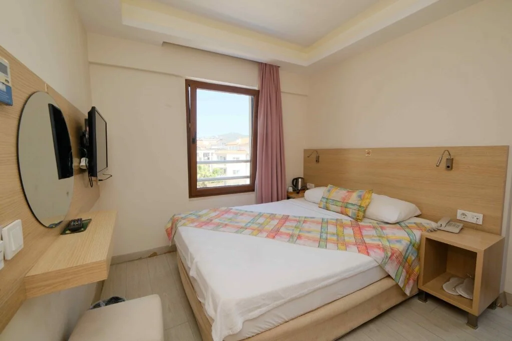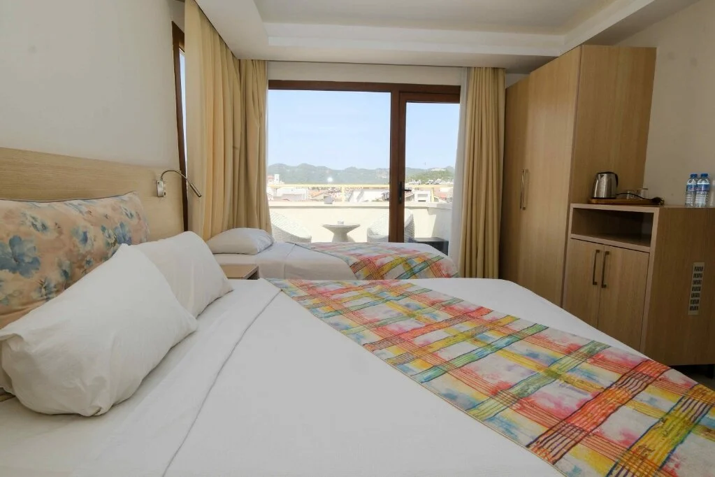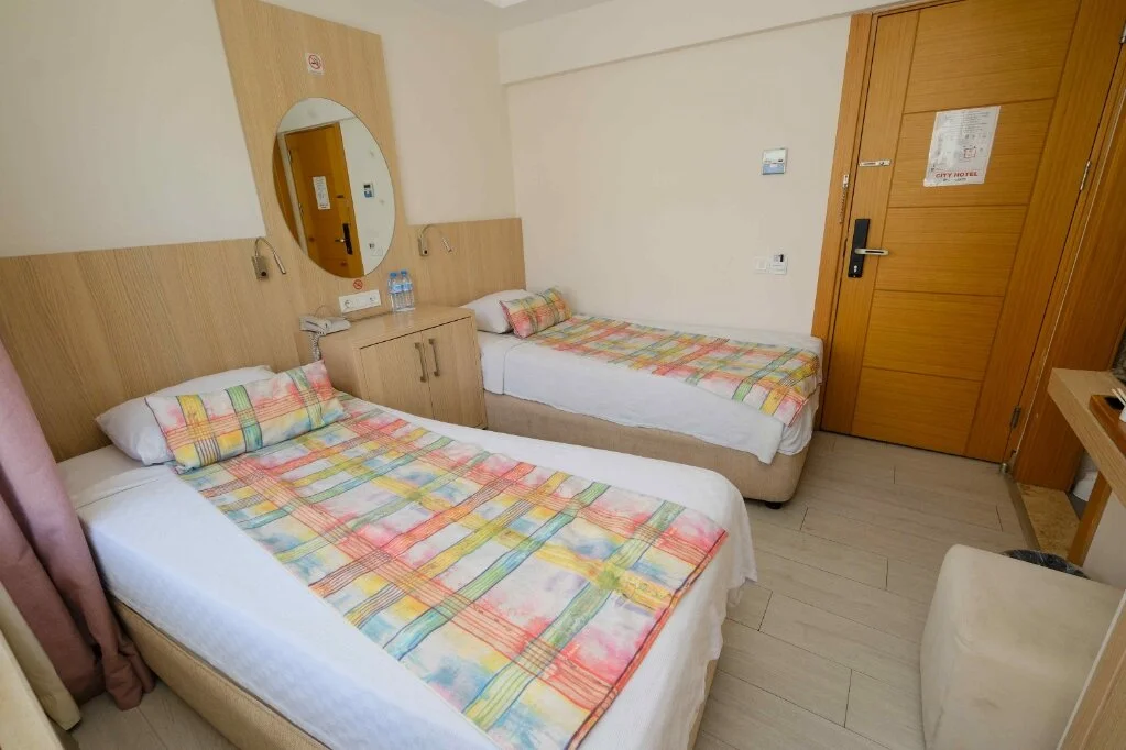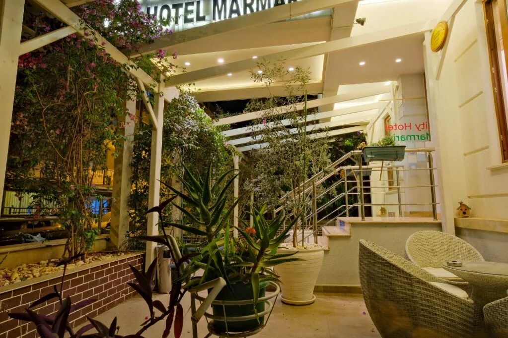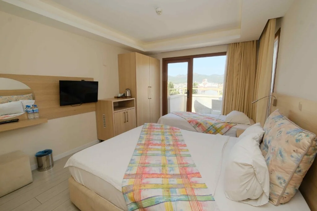 Marmaris merkezde konumlanan City Hotel Marmaris, ev sıcaklığındaki odaları, güler yüzlü personelleri ve doğal güzellikleri ile misafirlerine huzurlu bir tatil vadediyor. Tesisin tüm odalarında; TV, uydu yayını, minibar, klima, kablosuz internet bağlantısı, saç kurutma makinesi, balkon, üç kişilik odalarında şezlonglu teras bulunuyor. Denizin maviliğine ve şehir hayatının eğlencesine yakın konumda bulunan tesisin turunç ve meyve ağaçlarının gölgesinde kahveni yudumlayabilirsin. Sabahları leziz bir kahvaltı servisiyle güne başlayabileceğin tesisin odalarında ve ortak kullanım alanlarında Wi-Fi bulunuyor. Ücretsiz plaja 100 metre uzaklıkta olan tesiste; güneşin tadını çıkarabileceğin açık havuz, minik misafirler için açık çocuk havuzu, şezlonglu terası, ortak TV alanı, kuru temizleme ve leziz tatlar sunan restoran mevcut. Doğal güzellikleri ve kusursuz plajıyla eğlenceli tatillerin vazgeçilmez adresi Marmaris’te bulunan City Hotel Marmaris, ev konforunda sunduğu odaları, güler yüzlü hizmeti ve yüzme havuzu ile Marmaris Otogarı’na 2 km mesafede bulunuyor.